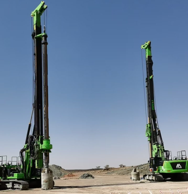 Recently, several equipment of TYSIM Piling Equipment Co., Ltd. (hereinafter referred to as "TYSIM")the multiple rotary drilling rigs with Caterpillar chassis developed have performed outstandingly in the construction of the power tower piles in Mecca, Saudi Arabia, demonstrating strong technical strength and efficient operation capabilities. The pile diameter requirement of the site is 800mm, the pile depth is about 12m, and the stratum is mainly sand and gravel. With its excellent performance, the equipment of TYSIM has achieved a high working efficiency of one pile in half an hour, which has been highly recognized by the local construction party.