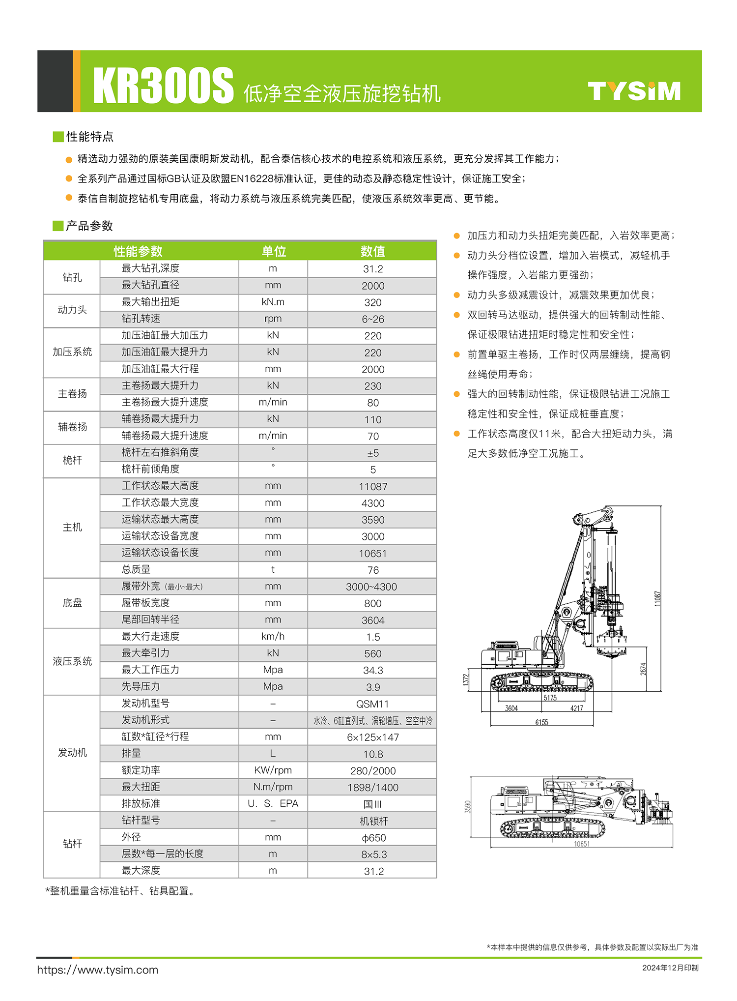 KR300S低凈空全液壓旋挖鉆機(jī)